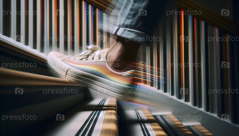 Ближайший план с медленным закрытием, подчеркивая размытость падающей обуви, Ай создал изображение