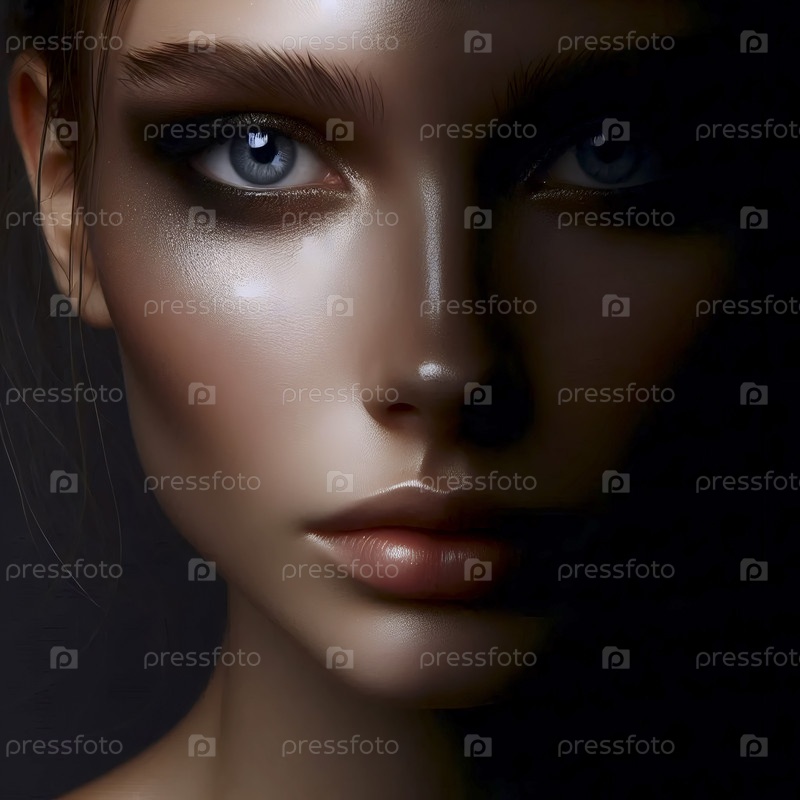Трехчетверточный портрет, освещенный капризным классическим освещением Рембрандта, Ai generated image