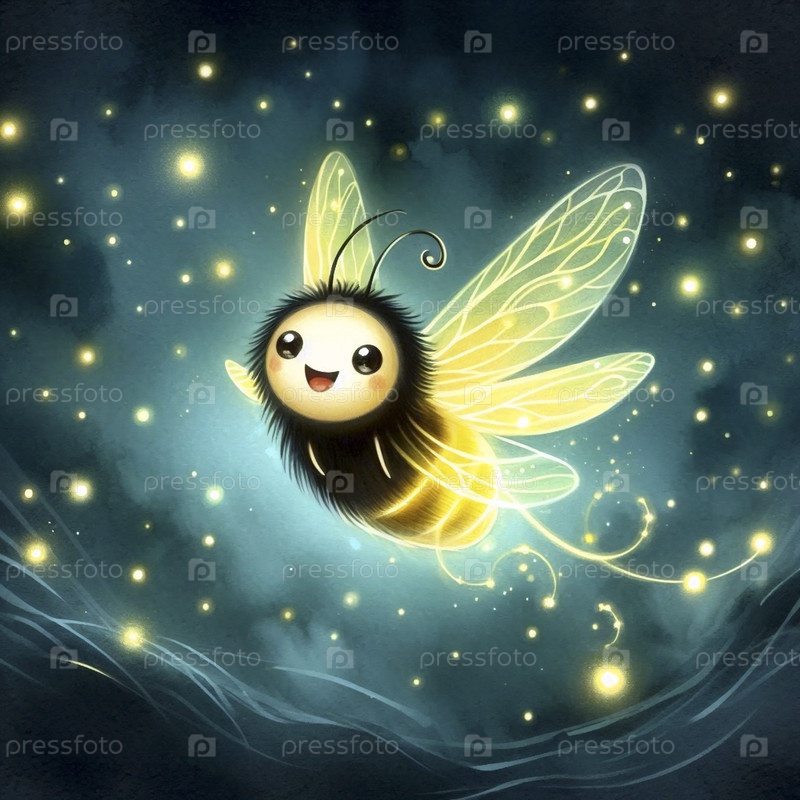 Sparkling Firefly Акварельная художественная печать, Ai generated image