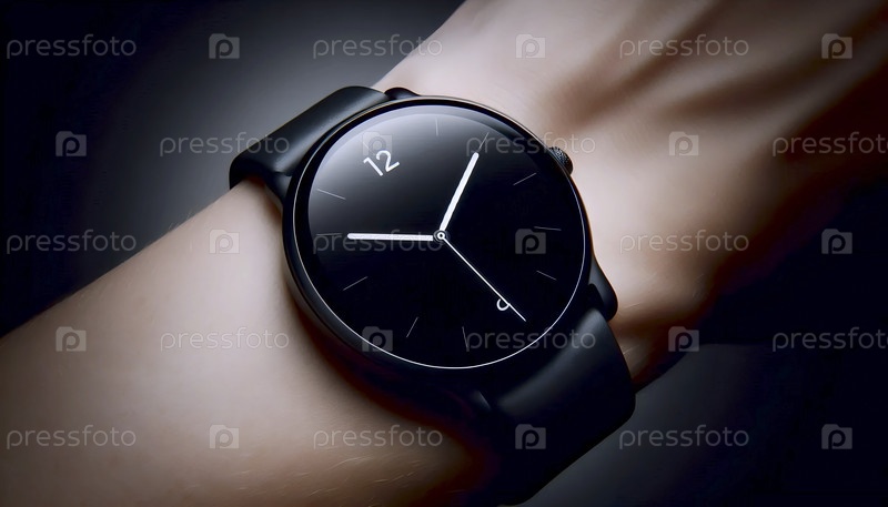 Мокет смарт-часов на запястье, отображающий минимальную пустую линию часов только с маркерами времени, Ai generated image