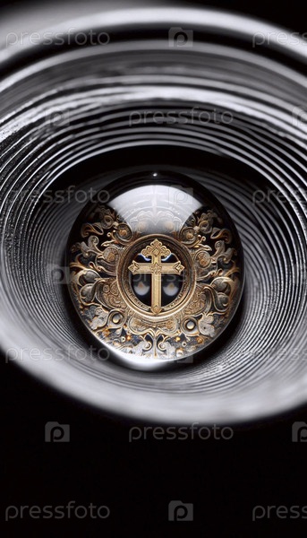 Макросъемка капли, преломляющей рисунок ткани на металле, Ai создала изображение