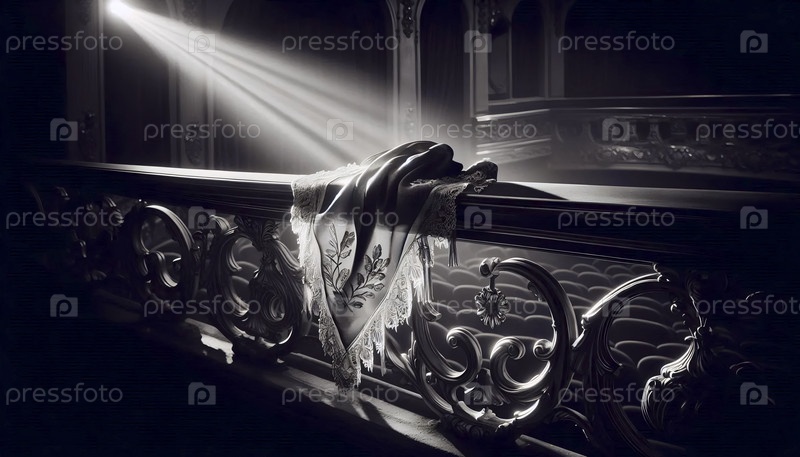 Забытый шелковый шарф на позолоченном периле оперного театра, Ai generated image
