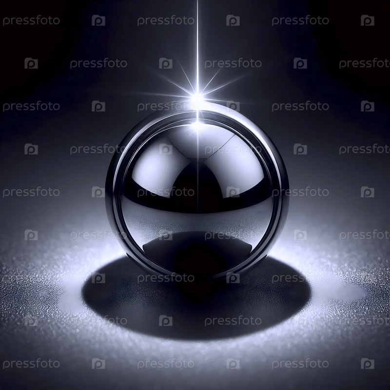 Мокет шарика из одной хромированной стали на магнитной поверхности, подвешенный в темноте, Ai generated image