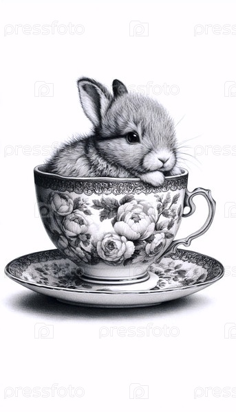 кролик-карлик в чайной чашке чернила рисунок