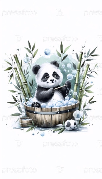 Панда в бамбуковом лесу Ванна акварельный арт-принт, Ai generated image