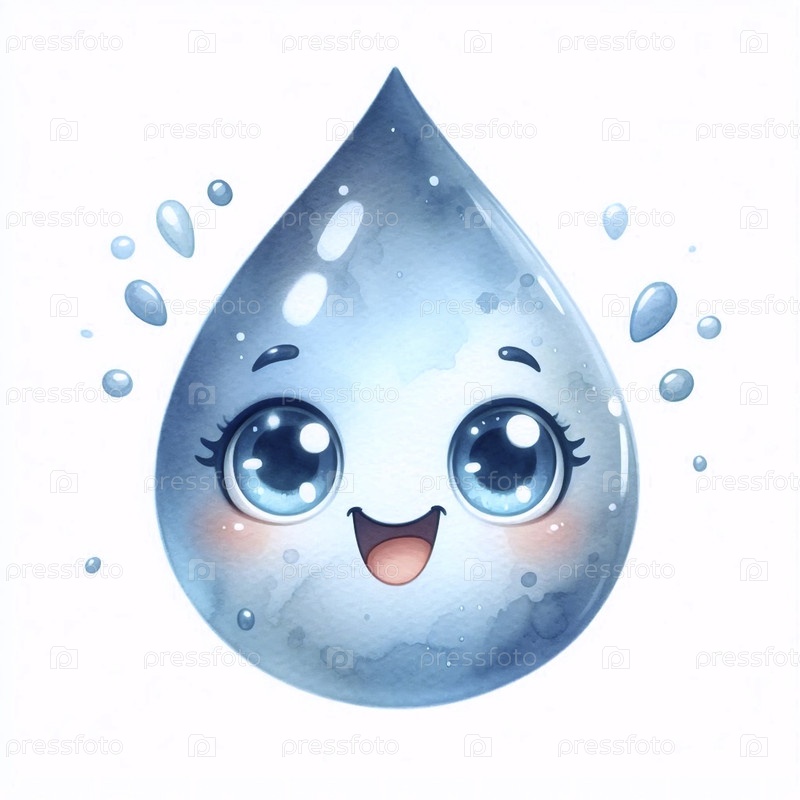 Happy Raindrop акварельный художественный печат, Ai generated image