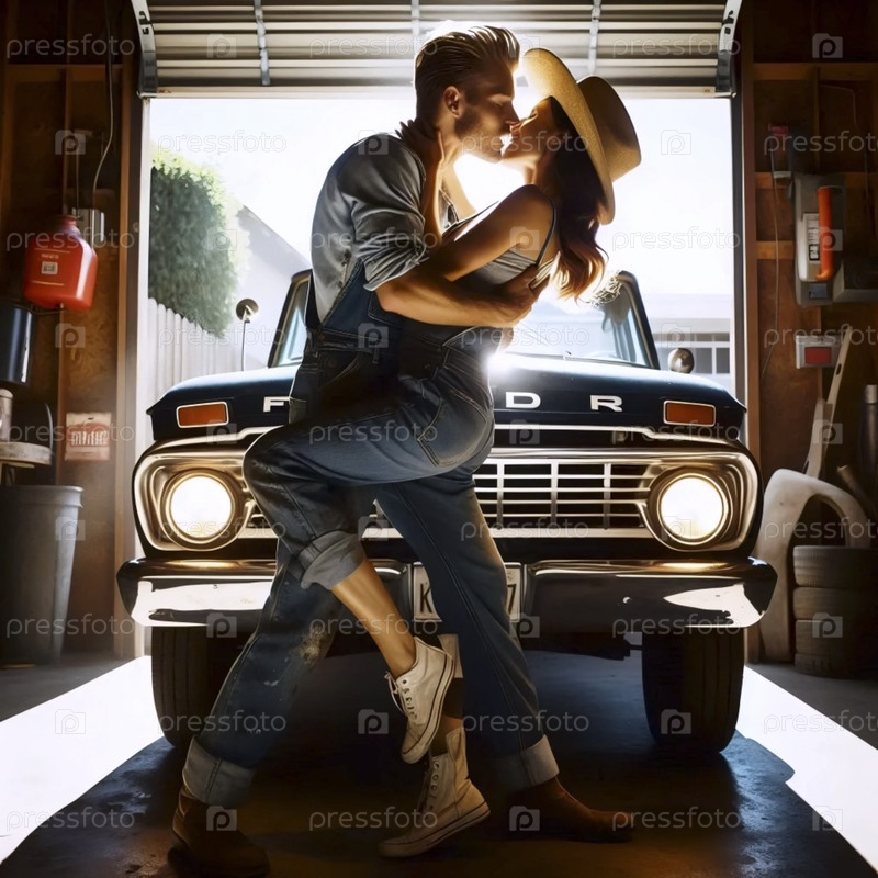 Поцелуй механика в гараже, Ai generated image