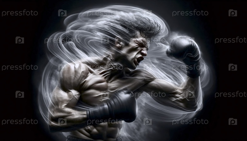 Фотография с длинной экспозицией, захватывающая боксера в центре крюка, Ai generated image