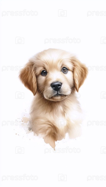 Pretty Puppy акварельный художественный печат, Ai generated image