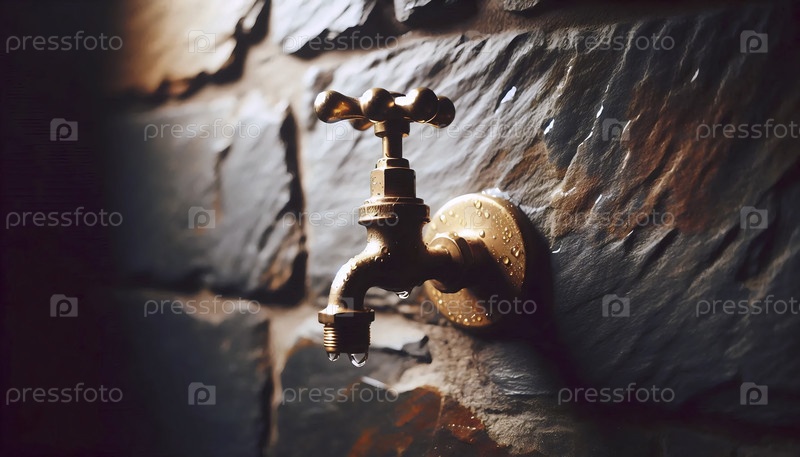 Мокет крана, установленный на стену из латуни на текстурированной сланцевой стене, Ai generated image