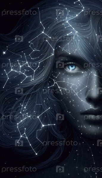 Портрет женщины, сделанный из созвездий, Ai generated image