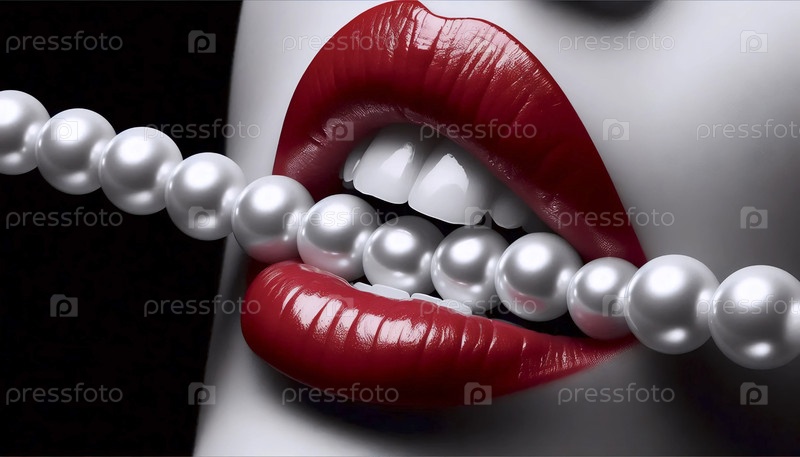 Губы кусают жемчужную нить, Ai generated image