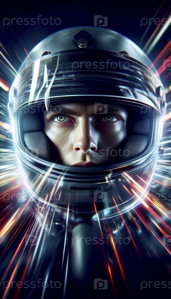 Тесный портрет, изолированный в движении гоночного пилота, Ай создал образ