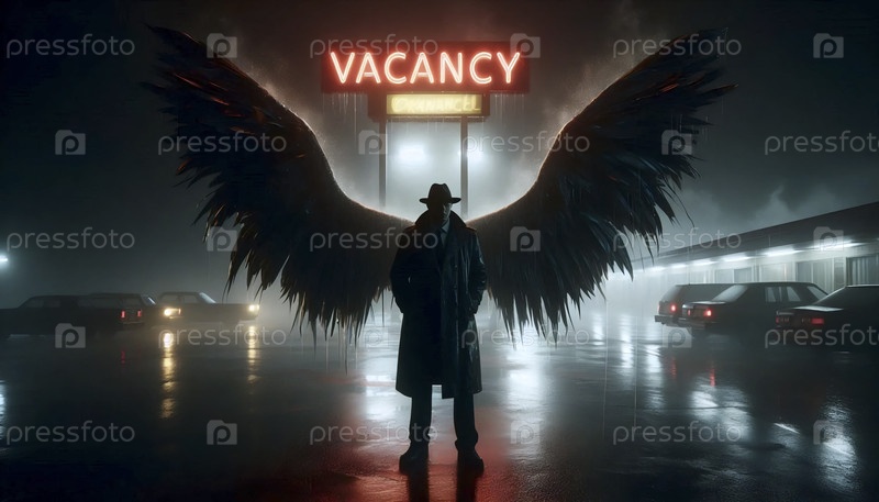 Широкий снимок со стороны пустой, покрытой дождем парковки, созданный Ай