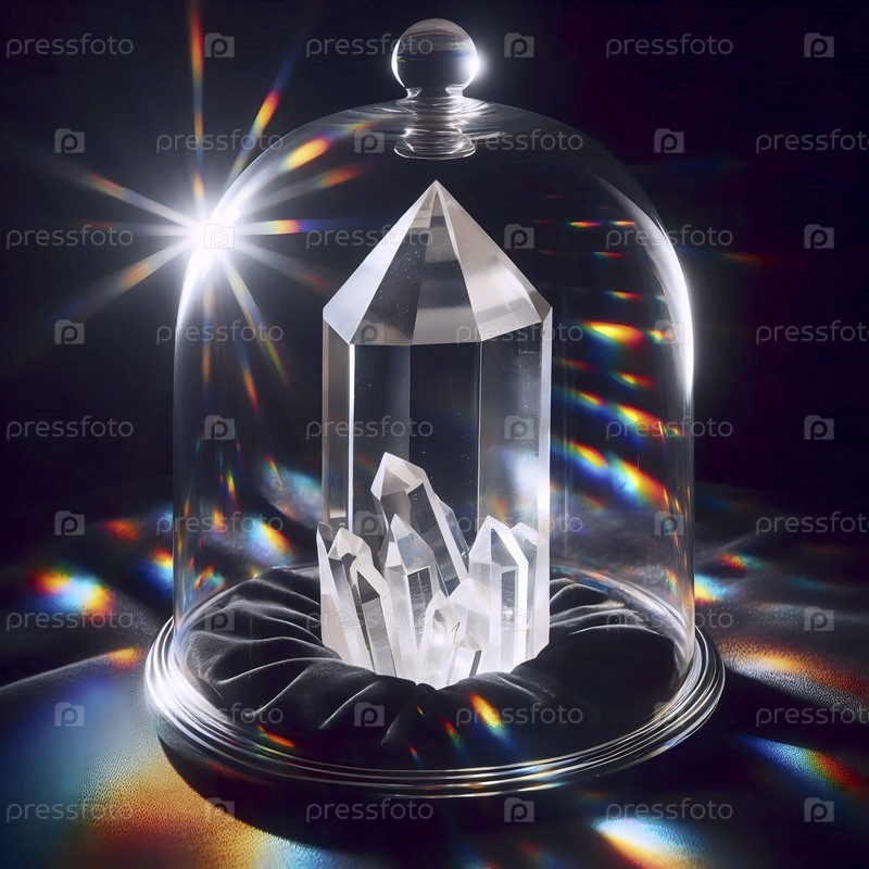 Прозрачный, резко фасетированный макет кристаллических точек на черном бархатном стекле в стеклянной колодце Ai создал изображение