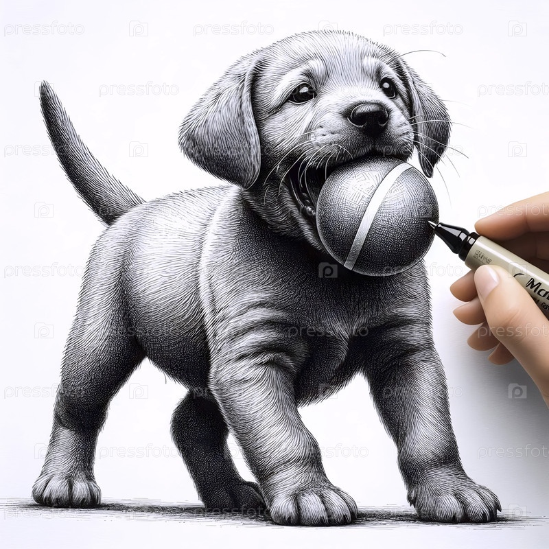 Щенок с шариковым чернилом рисует художественную печать, Ai generated image