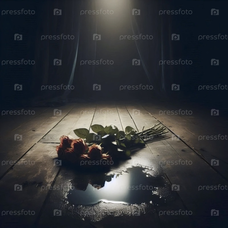 Букет у ее ног в луже тающего льда, Ай создала изображение