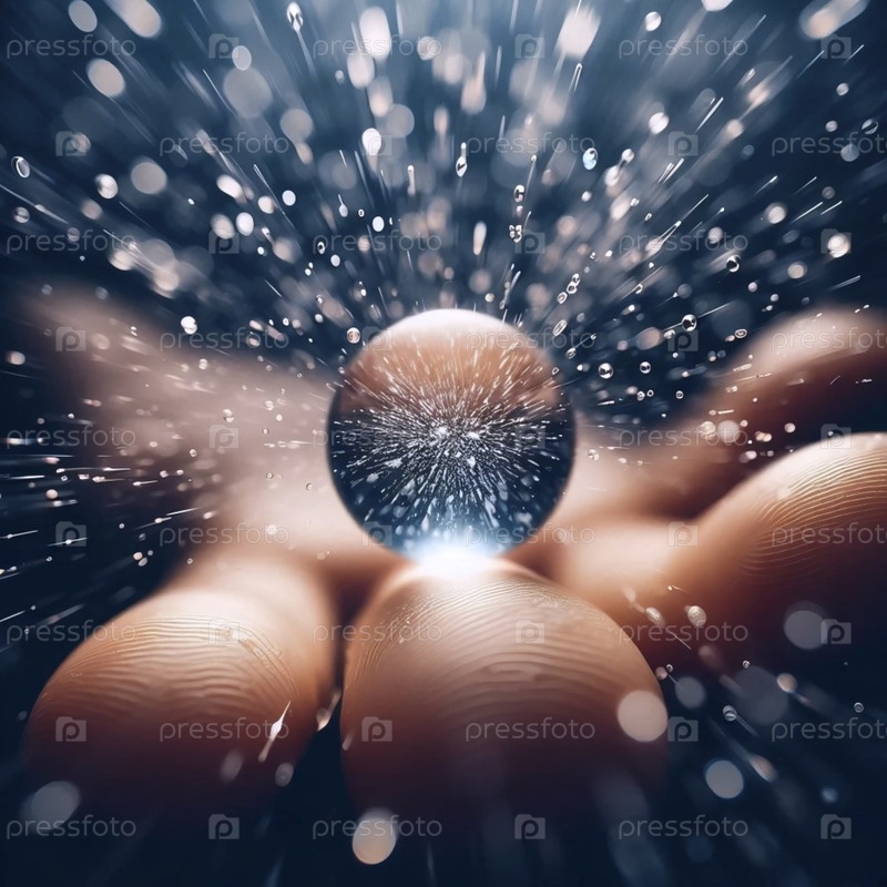 Макросъемка, сфокусированная на распылительном рисунке одной капли пота, Ai создала изображение