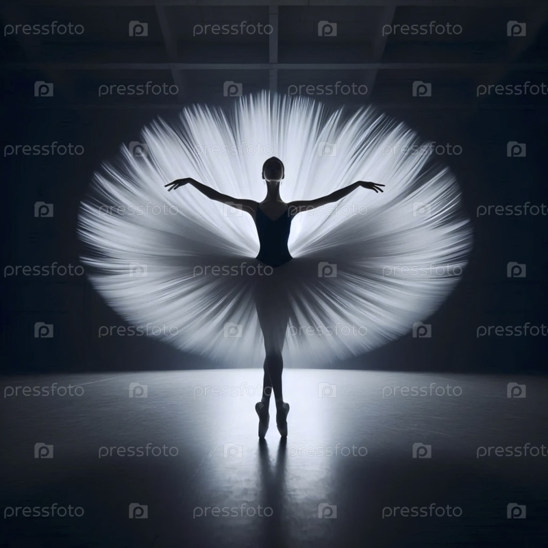 Широкий снимок в темной студии, размытый танцор как световой вихрь, Ай создал изображение
