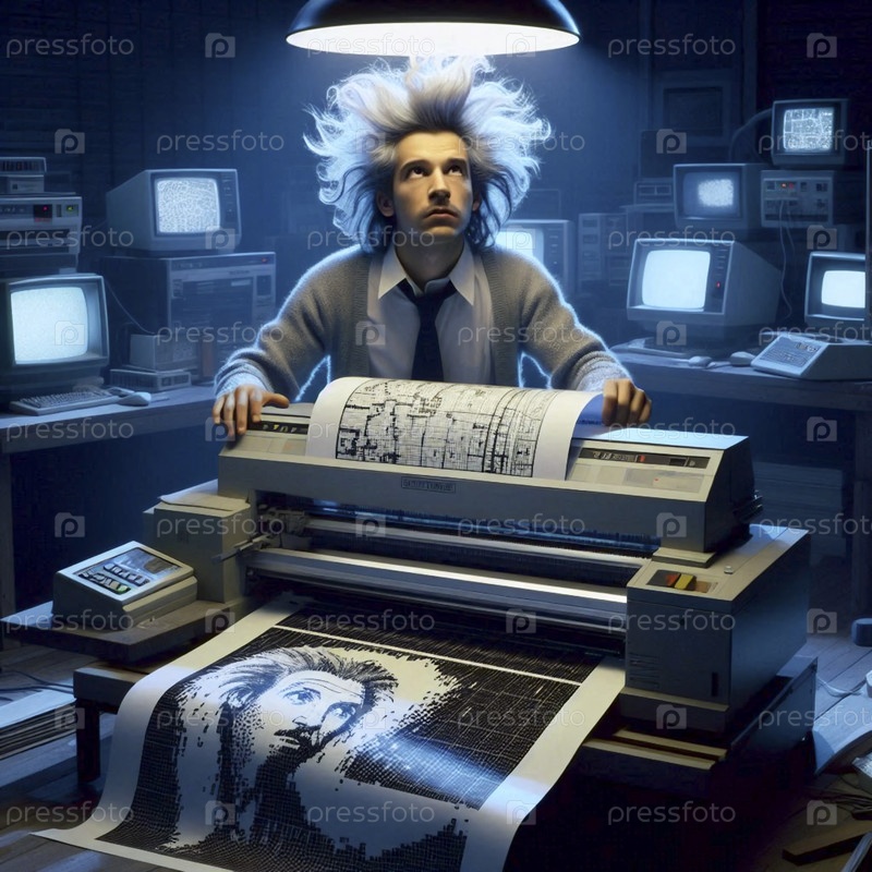 Компьютерный гений 1980-х годов с линейным принтером, Ай создал изображение