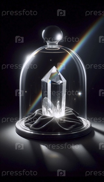 Прозрачный, резко фасетированный макет кристаллических точек на черном бархатном стекле в стеклянной колодце Ai создал изображение