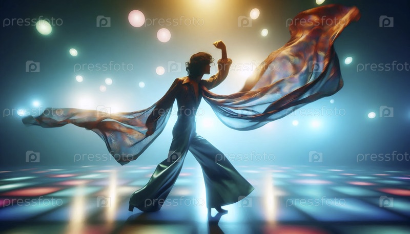 Динамичное и яркое кинематографическое захват потока эпохи диско, Ai generated image