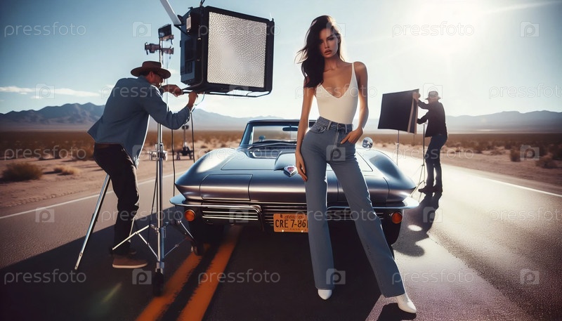 Рекламная съемка джинсов на маршруте 66, Ai A generated image