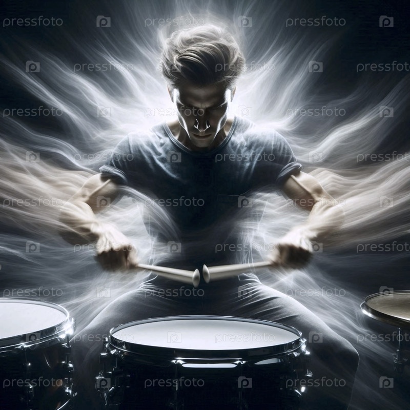 Фото длительной экспозиции, захватывающий барабанщик в среднем росте, Ai generated image