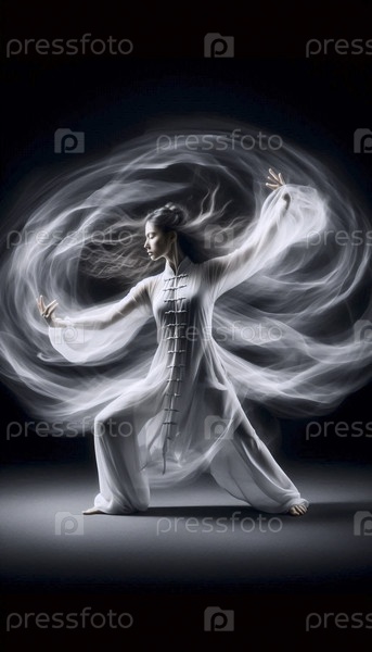 Фотография с длинной экспозицией, захватывающая практикующего тай-чи в движении, Ai generated image