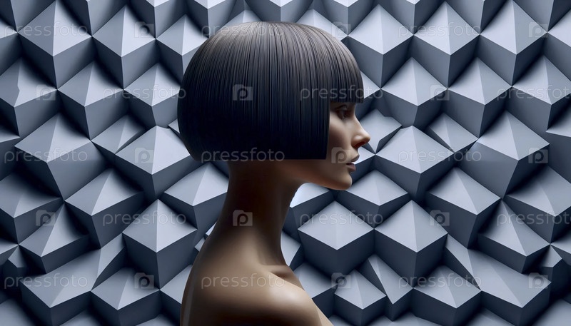 Геометрическая стрижка боба против геометрической стены, Ai generated image