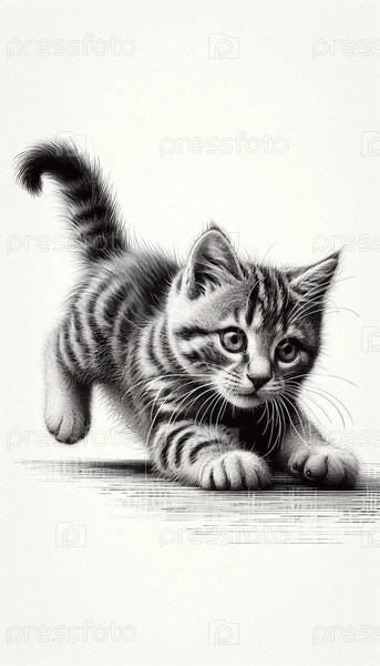 Качающийся котёнок чернила рисование художественная печать, Ai generated image