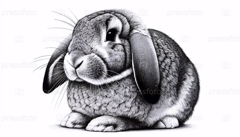 Floppy-Eared A Bunny чернила рисование художественная печать, Ai сгенерированное изображение