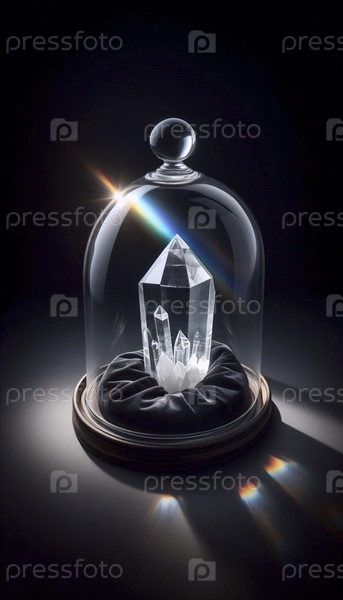 Прозрачный, резко фасетированный макет кристаллических точек на черном бархатном стекле в стеклянной колодце Ai создал изображение