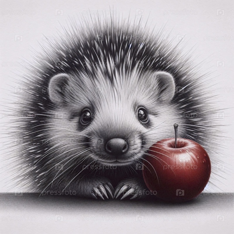 Маленький Козерог с яблоком на перьях чернил рисует художественную печать, Ai generated image