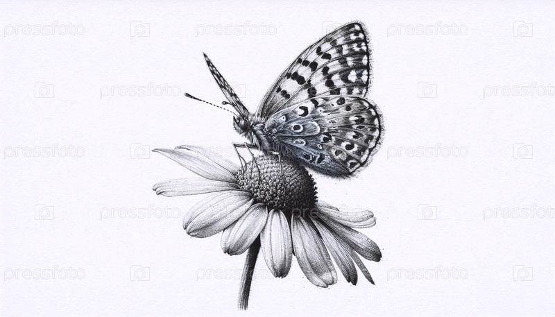 Бабочка на цвете чернил рисование художественная печать, Ai A generated image