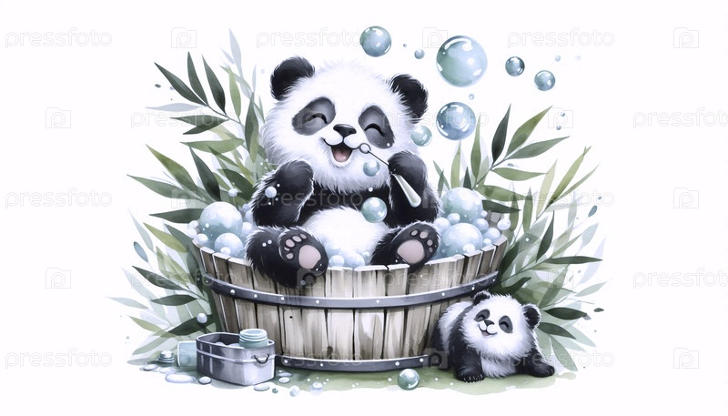 Панда в бамбуковом лесу Ванна акварельный арт-принт, Ai generated image