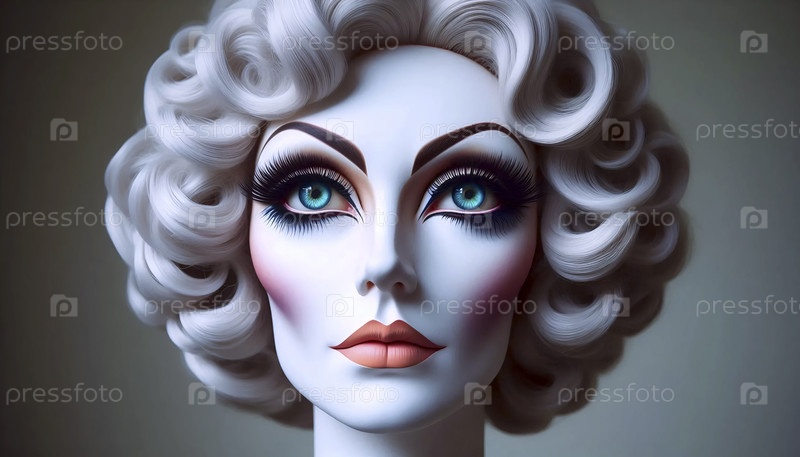 Макияж, нанесенный на голову гипсового парика, Ai generated image