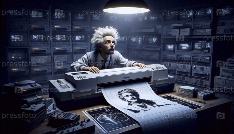 Компьютерный гений 1980-х годов с линейным принтером, Ай создал изображение