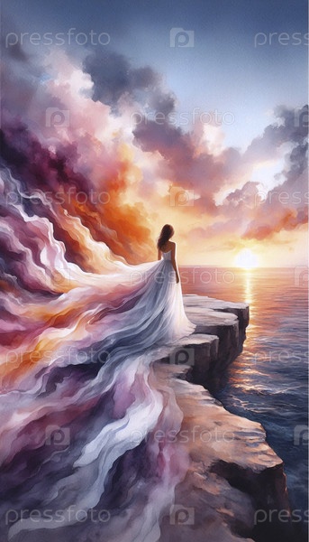 Платье, растворяющееся в акварельном закате, Ai generated image