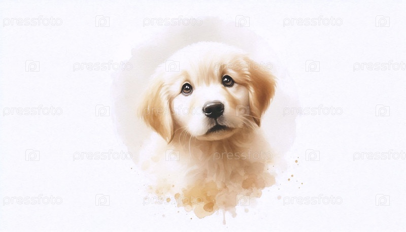 Pretty Puppy акварельный художественный печат, Ai generated image