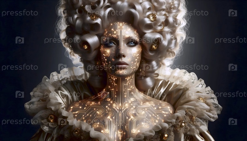 Кибербарокко портрет с золотой схемой, Ai generated image