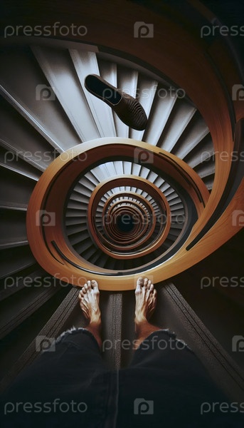 Снимок с вершины лестницы, глядя вниз на путешествие обуви, Ай создал изображение