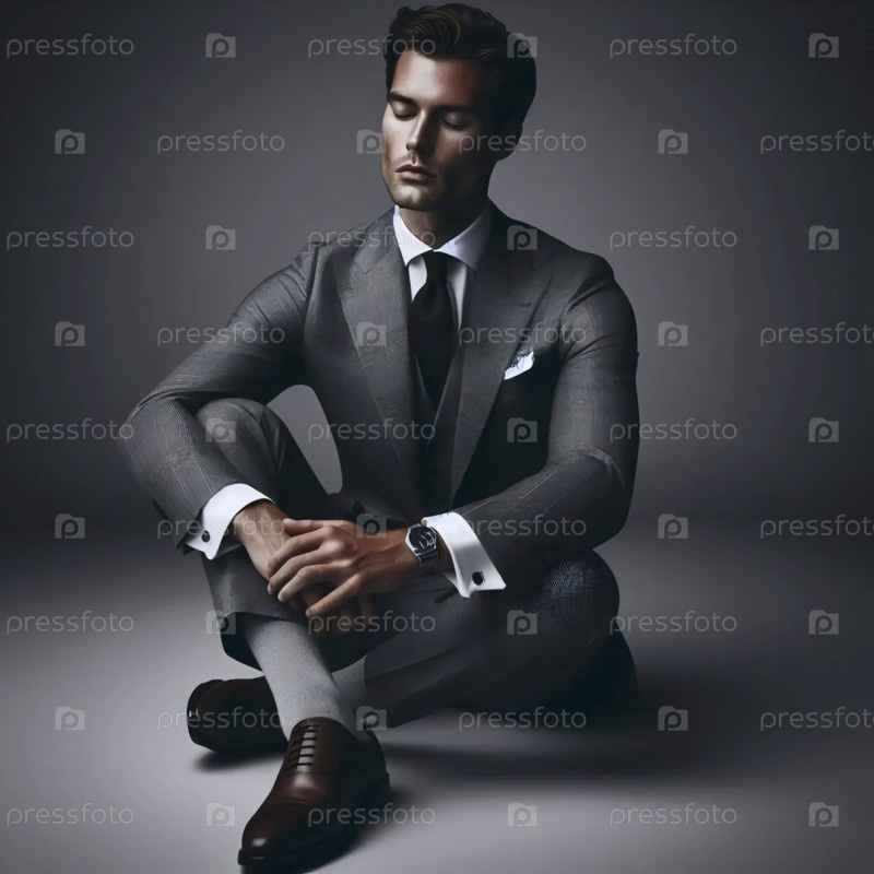 Портрет длиной три четверти в классической студийной обстановке, полный эстетический контроль, Ai generated image