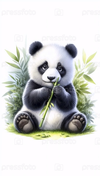 Панда с бамбуком Стреляйте в акварельный арт-принт, Ai generated image