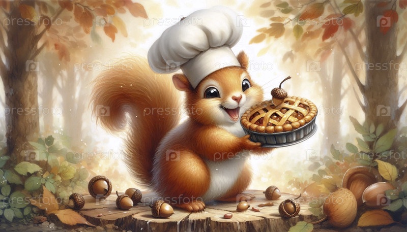 Березовая белка печать желудочный пирог акварельный арт-принт, Ai generated image