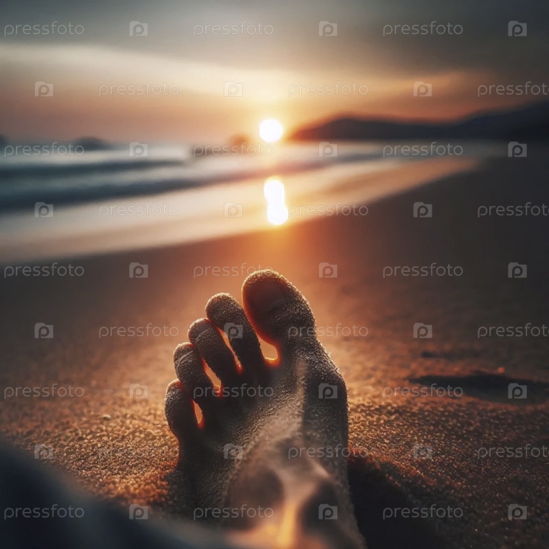 Силуэт стоянки на обширном пляже заката, Ай создал изображение
