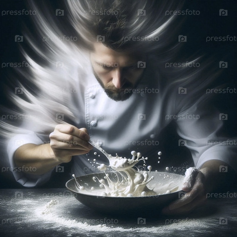 Фотография с длинной экспозицией, на которой запечатлен шеф-повар, подающий блюдо, Ai generated image