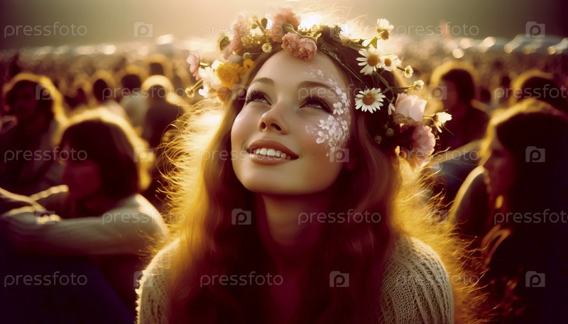 Хиппи-девушка на Вудстоке, Ai generated image A