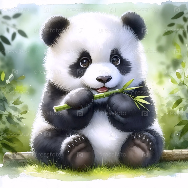 Панда с бамбуком Стреляйте в акварельный арт-принт, Ai generated image