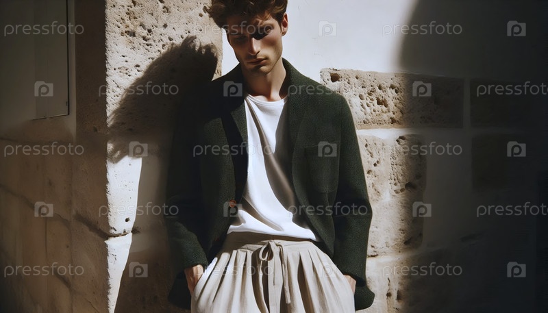 Мужчина в твидовом блейзере и льняных брюках, Ai generated image